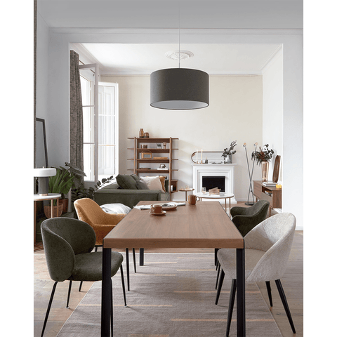 Entscheiden Sie sich für Stücke wie einen Tisch und ein Sideboard aus massivem Nussbaumholz und ergänzen Sie es mit Stühlen in Stoffen wie Chenille, Cord oder Samt. Und natürlich für Beleuchtung oder Accessoires im Vintage-Stil in Grün-, Senf- oder Goldtönen.